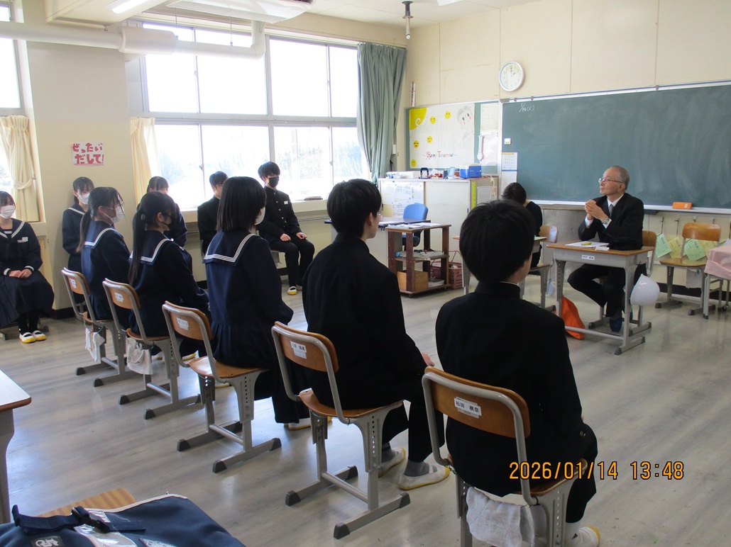 1月14日(水)、これからの私立・公立高校入試に向けての「3年生全体面接練習」を行いました。今回は、校内全職員に加え、地域の方にも面接官になっていただき、子供たちの所作や受け答え等についてのアドバイスをいただきました。子供たちはいつもと違う雰囲気の中で、緊張感を持ちながら様々な質問に答えていました。また、出入りの仕方についても、挨拶のタイミングや立ち位置など細かなところまで丁寧に御指導してくださり、私たち中学校職員も勉強になりました。