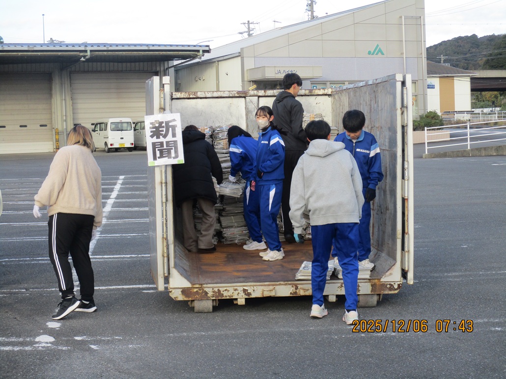 12月6日(土)、師走のとても寒い中、「第2回PTA資源回収」を行いました。今回も保護者や教職員に加え、3年生ボランティアが大活躍してくれました。保護者の車が来るたびに元気な声で「おはようございます」や「ありがとうございました」のあいさつをしたり、きびきびと動いて作業をしたり、男女で協力しながら楽しく活動したりと、やらされている活動ではなく、まさに自ら進んで・考えて動いている様子がたくさん見られました。